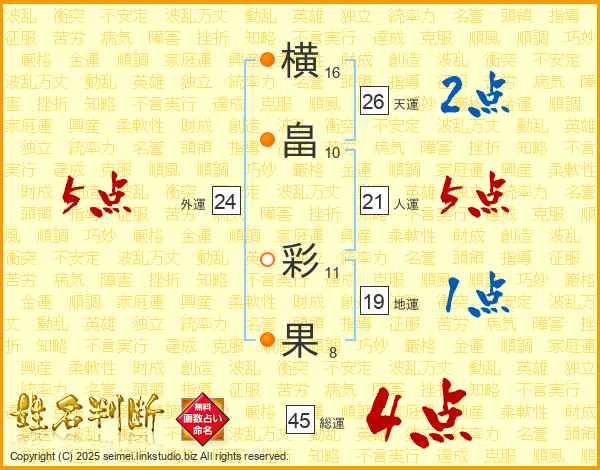 横畠彩果さんの総運は45画の4点!