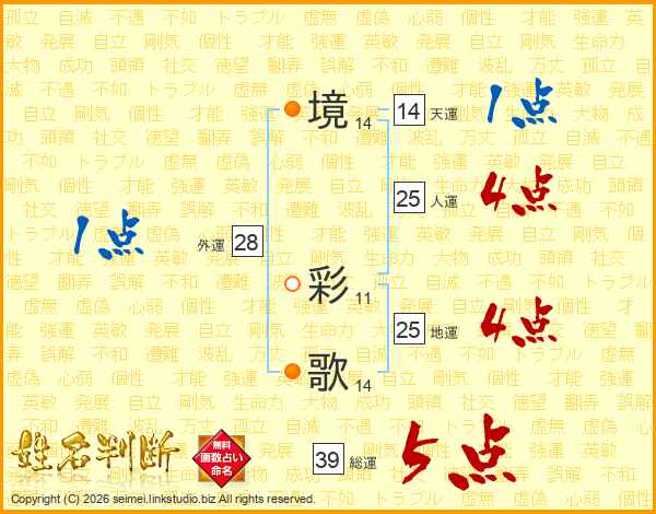 境彩歌さんの総運は39画の5点!