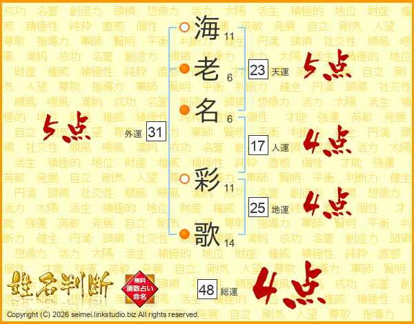 海老名彩歌さんの総運は48画の4点!