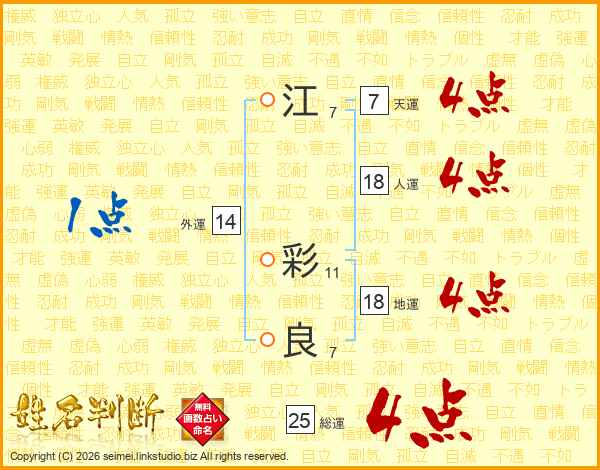 江彩良さんの総運は25画の4点!