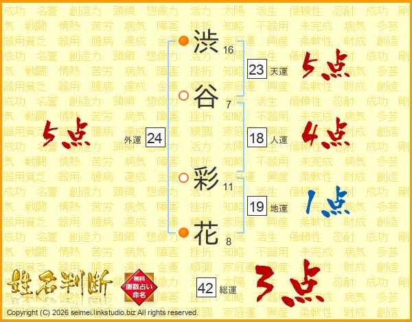 渋谷彩花さんの天運は23画の5点!