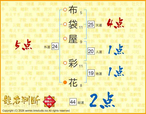 布袋屋彩花さんの総運は44画の2点!