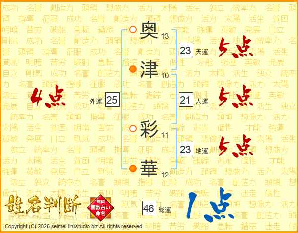 奥津彩華さんの天運は23画の5点!