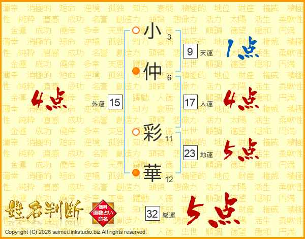 小仲彩華さんの総運は32画の5点!