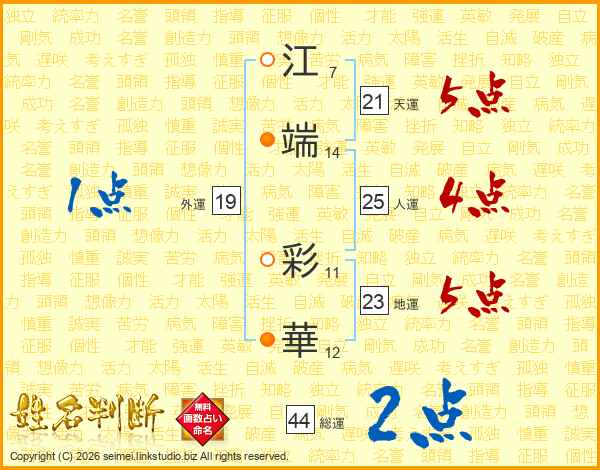 江端彩華さんの総運は44画の2点!