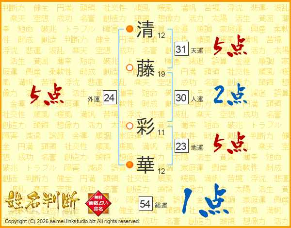 清藤彩華さんの天運は31画の5点!