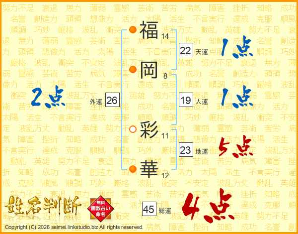 福(14画)岡(8画) 彩(11画)華(12画)