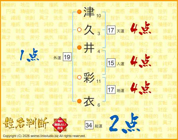 津久井彩衣さんの天運は17画の4点!