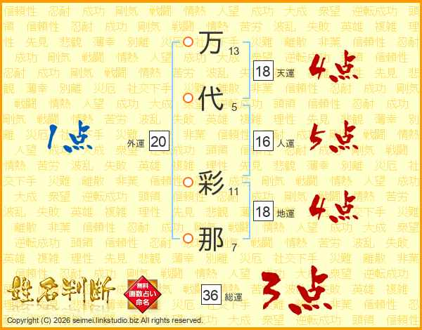 万代彩那さんの天運は18画の4点!