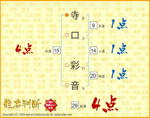 寺口彩音さんの総運は29画の4点!
