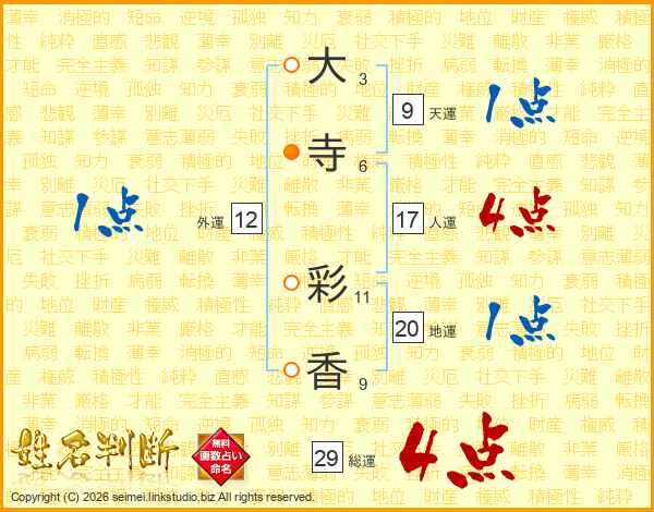 大寺彩香さんの総運は29画の4点!