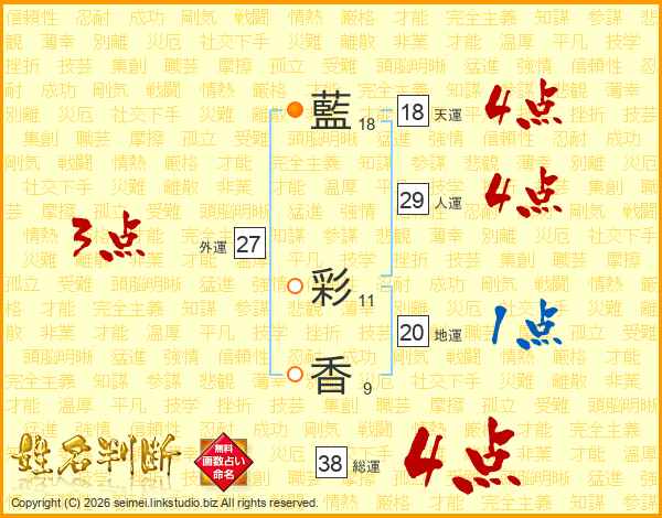 藍彩香さんの総運は38画の4点!