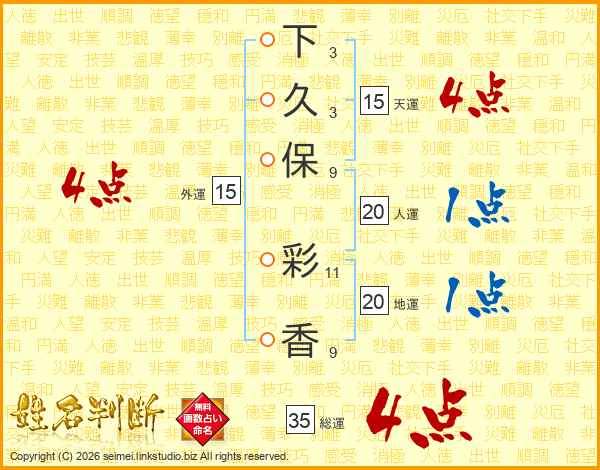下久保彩香さんの総運は35画の4点!