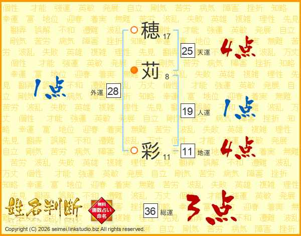 穂(17画)苅(8画) 彩(11画)