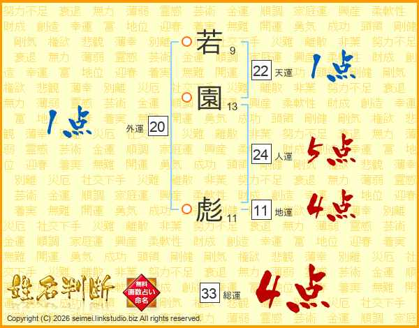 若園彪さんの総運は33画の4点!