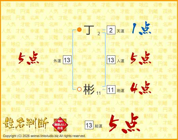 丁彬さんの総運は13画の5点