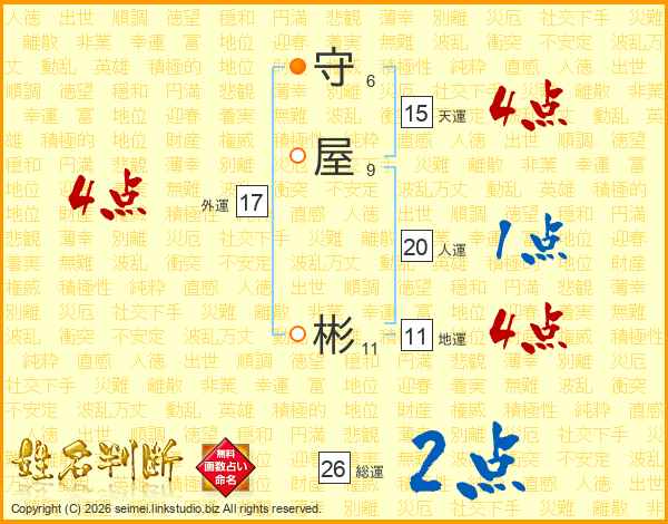 守屋彬さんの総運は26画の2点!