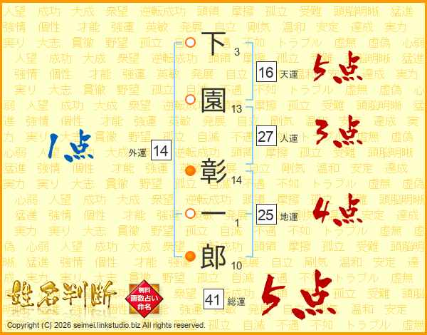 下園彰一郎さんの天運は16画の5点!