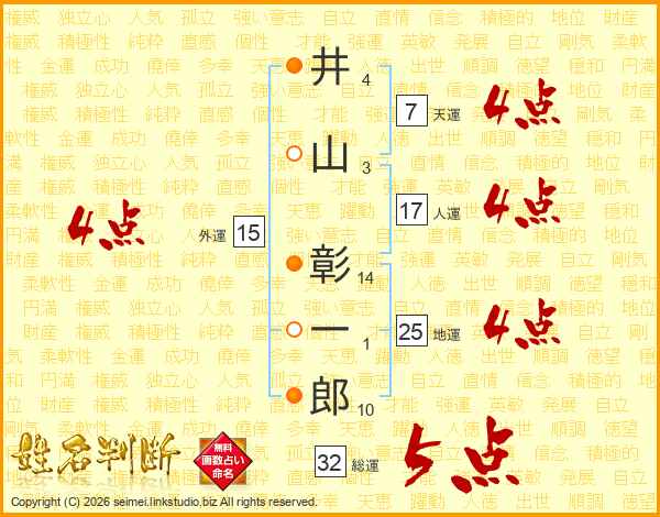 井山彰一郎さんの天運は7画の4点!