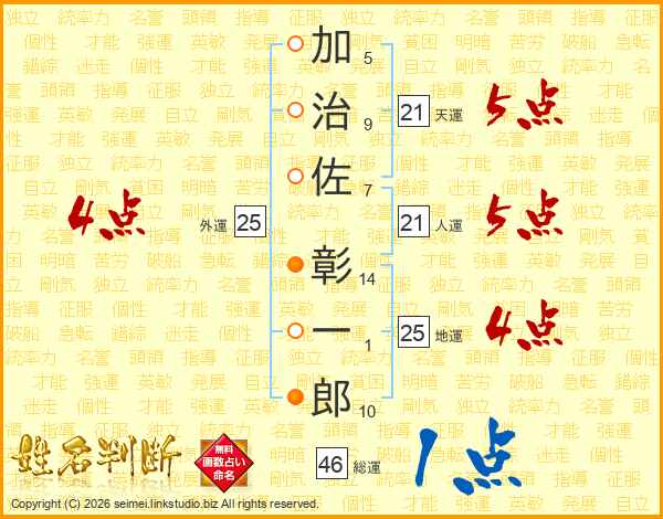 加治佐彰一郎さんの総運は46画の1点!