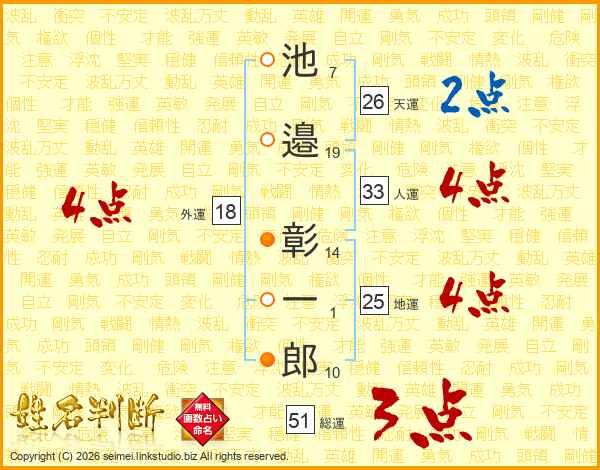 池邉彰一郎さんの人運は33画の4点!
