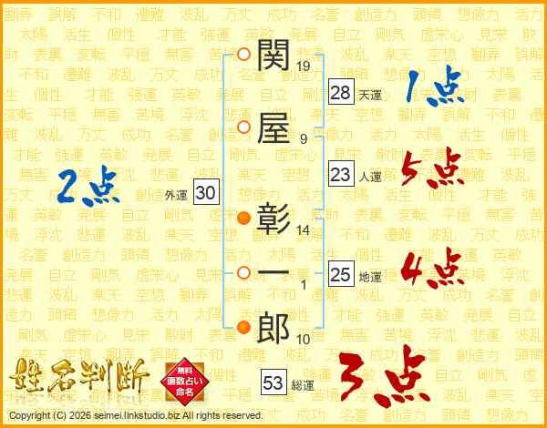 関屋彰一郎さんの人運は23画の5点!