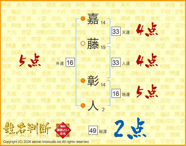 嘉藤彰人さんの総運は49画の2点!