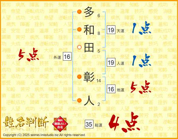多(6画)和(8画)田(5画) 彰(14画)人(2画)