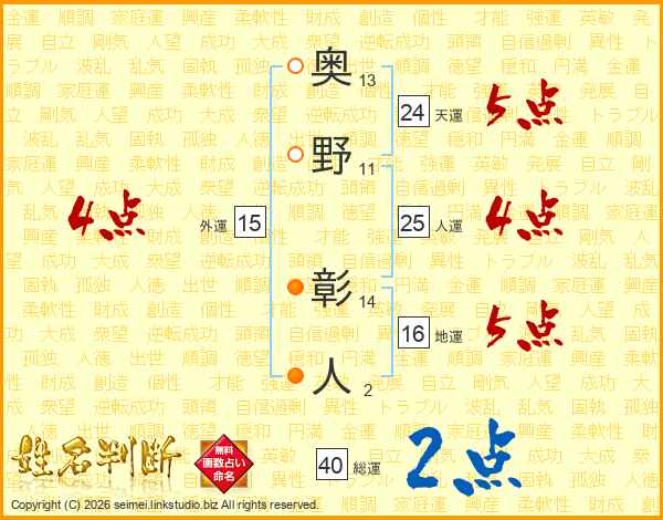奥野彰人さんの人運は25画の4点!