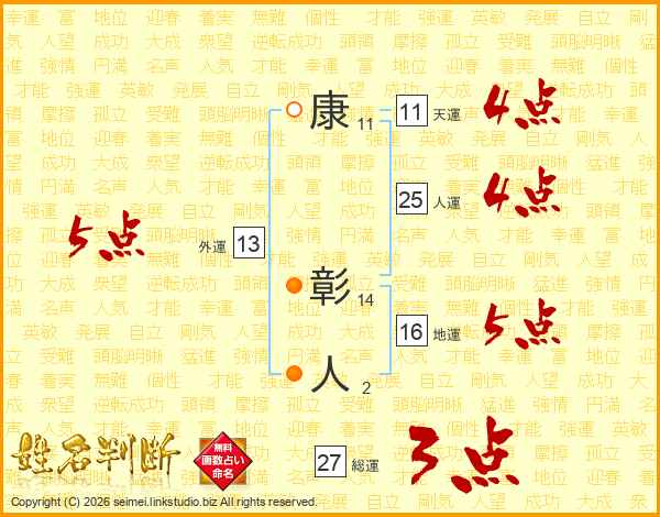 康彰人さんの総運は27画の3点!