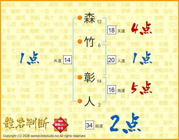 森竹彰人さんの総運は34画の2点!