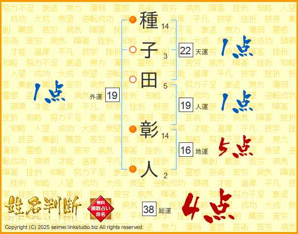 種(14画)子(3画)田(5画) 彰(14画)人(2画)