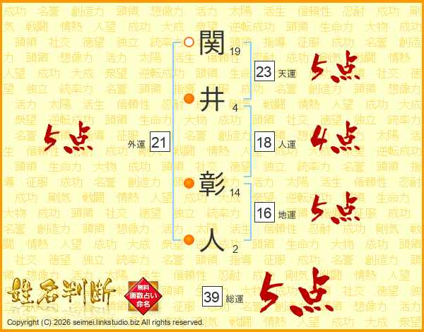 関井彰人さんの総運は39画の5点!