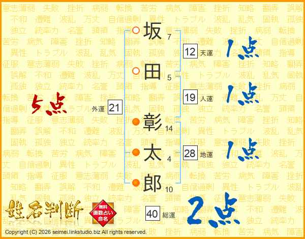 坂田彰太郎さんの外運は21画の5点!