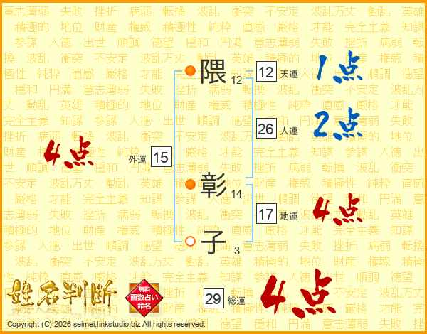 隈彰子さんの総運は29画の4点!