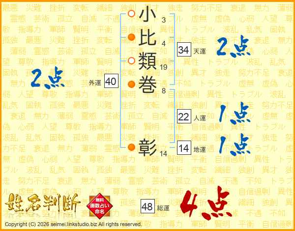 小(3画)比(4画)類(19画)巻(8画) 彰(14画)