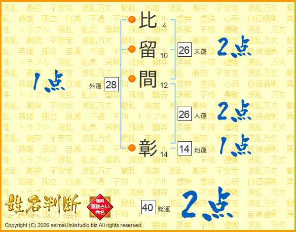 比留間彰さんの天運は26画の2点!