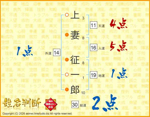 上妻征一郎さんの総運は30画の2点!
