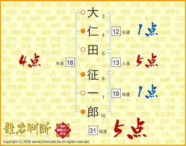 大仁田征一郎さんの総運は31画の5点!