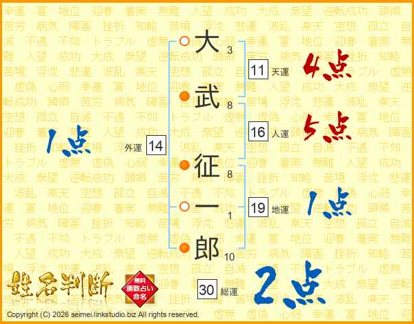 大武征一郎さんの総運は30画の2点!