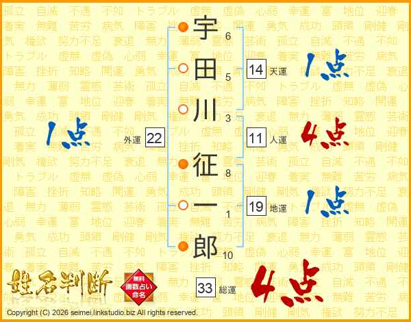 宇田川征一郎さんの総運は33画の4点!