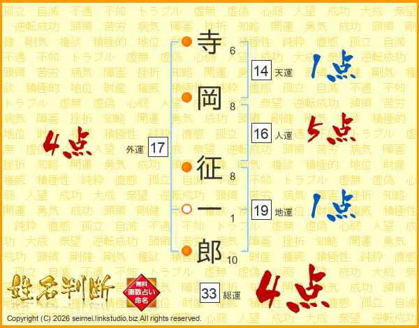 寺岡征一郎さんの総運は33画の4点!