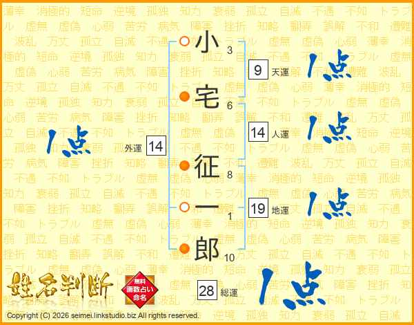 小宅征一郎さんの人運は14画の1点!