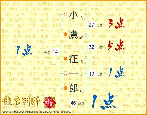 小鷹征一郎さんの総運は46画の1点!