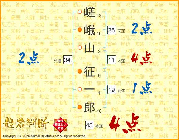 嵯峨山征一郎さんの天運は26画の2点!