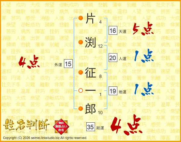 片(4画)渕(12画) 征(8画)一(1画)郎(10画)