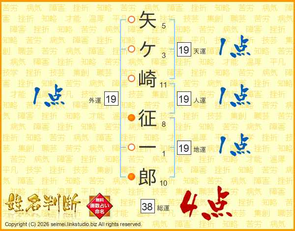 矢ケ崎征一郎さんの総運は38画の4点!