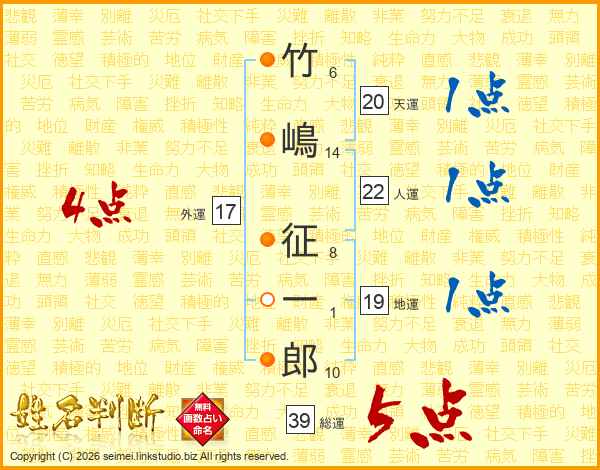 竹嶋征一郎さんの総運は39画の5点!
