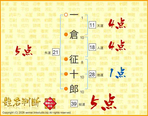 一倉征十郎さんの総運は39画の5点!
