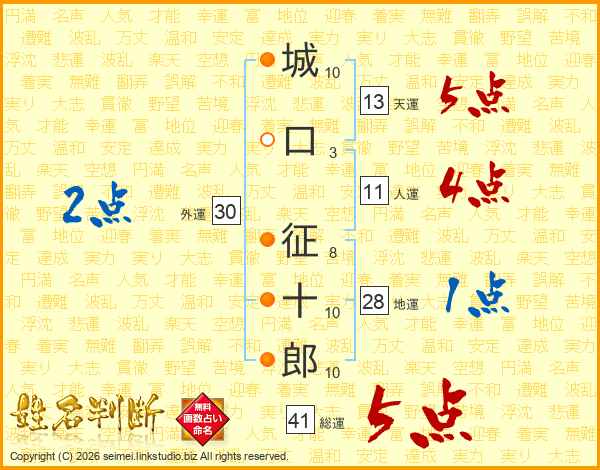 城(10画)口(3画) 征(8画)十(10画)郎(10画)